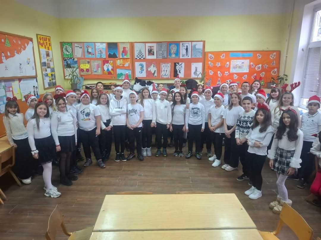 Ученици и учитељи 4/1 и 4/2 реализовали су велики број активности у оквиру пројекта “ Новогодишња радост“. Пројекат је имао за циљ припрему и реализацију сарадње са предшколском установом. Организоване су радионице у оквиру ЧОС-а, ваннастаних активности и ликовне културе на којима су припремани украси са новогодишњим мотивима,честитке, припреман додатни материјал за радионицу са предшколцима и урађена потпуна адаптација просторија пригодним радовима,паноима и декорацијом.У оквиру часова српског језика и припремили смо рецитал, а у оквиру часова музичке културе тематске песме. Ученици 4.разреда су припремили и пакетиће за све предшколце.